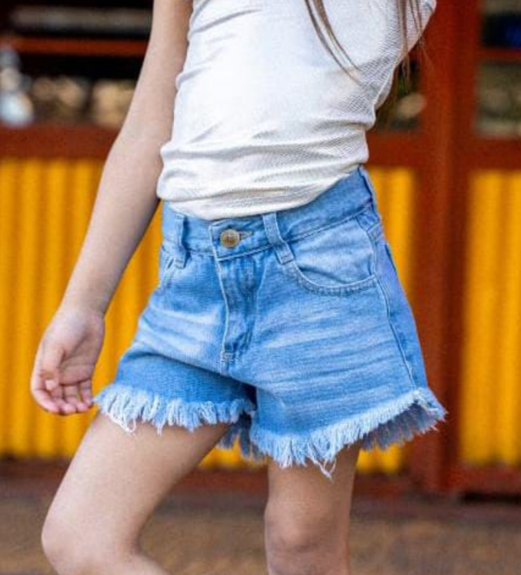 Short de jean de niña, ideal para el uso diario. Confeccionado en denim resistente y cómodo, perfecto para combinar con remeras, musculosas o buzos.